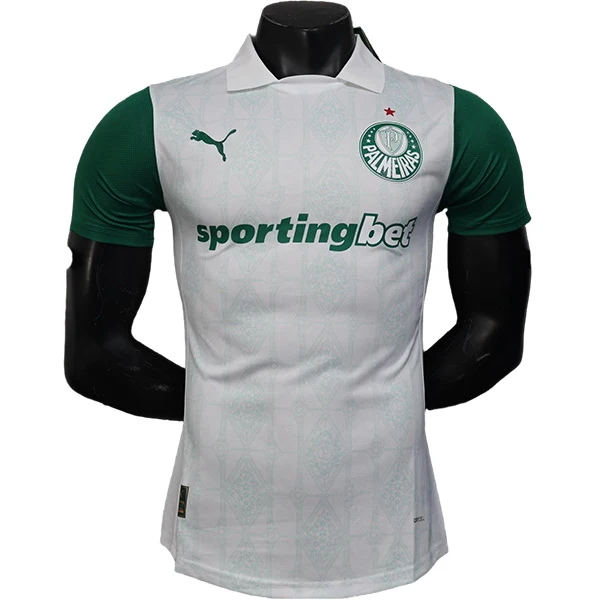 La Camiseta SE Palmeiras 2025 2026 blanca recoge el espíritu ganador del Verdão, un club acostumbrado a pelear por el Brasileirão y la Libertadores. Esta Camiseta segunda equipación rinde homenaje a las grandes noches del Allianz Parque y a una afición que nunca deja de empujar. Vístete como los jugadores y siente la presión de un equipo hecho para los grandes títulos. ¿Quieres formar parte de esa historia? Añádela ahora a tu carrito.