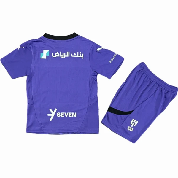 Más allá de la cancha, este Conjunto Al Hilal Saudi 2024 2025 Púrpura es una auténtica pieza de colección. Con su diseño exclusivo de tercera equipación, se convertirá en un recuerdo invaluable de esta emocionante temporada. Es el regalo perfecto para cualquier joven aficionado que desee conservar un pedazo de la historia de su club. ¡No dejes pasar la oportunidad de poseer esta joya! Explora más opciones en Conjuntos para Niños.