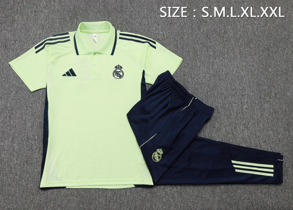El día de partido empieza mucho antes del pitido inicial. Este Conjunto, compuesto por conjunto y short coordinados, está diseñado en material técnico de alta calidad y tejido transpirable que mantiene la frescura durante las horas previas al encuentro. El cuello tipo conjunto aporta elegancia casual, perfecto para la grada, el bar deportivo o el entrenamiento del fin de semana. La gama verde claro con detalles negros aporta un toque distintivo que destaca entre los clásicos blancos. Combina con Conjunto Completo Conjunto Real Madrid 2025 2026 Amarillo Negro y renueva tu armario merengue.