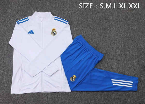 El Conjunto Real Madrid Barata es una elección directa para día de partido: cremallera larga, blanco protagonista y material técnico de alta calidad que aporta comodidad, así que compra ahora para llegar al estadio con imagen de aficionado serio.