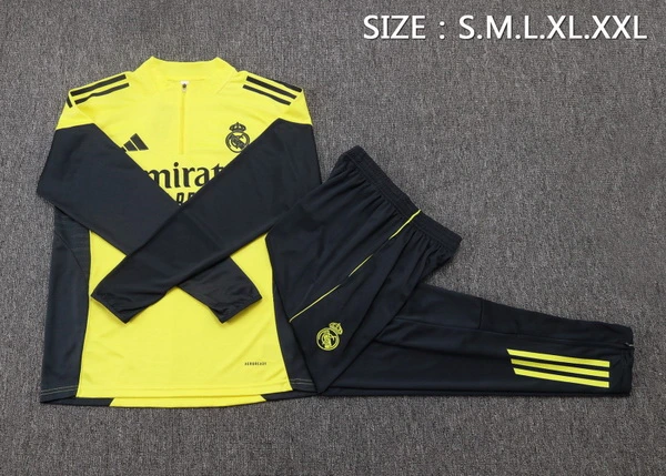 La temporada 2025 2026 vuelve a ser histórica para el Real Madrid: una plantilla hambrienta de títulos, un Santiago Bernabéu reformado y una afición que empuja desde la grada hasta el último minuto. El Conjunto Real Madrid Niños Barata 2025 2026 en amarillo y negro recoge ese espíritu ganador y lo lleva al armario de los más pequeños. Diseñado en tonos amarillo y negro vibrantes, este Conjunto representa la versión de entrenamiento que respira ambición europea. Si tu hijo sueña con levantar la próxima Champions, este es su uniforme oficial para empezar. Descubre también Ver todas las Niños y elige su próximo favorito.