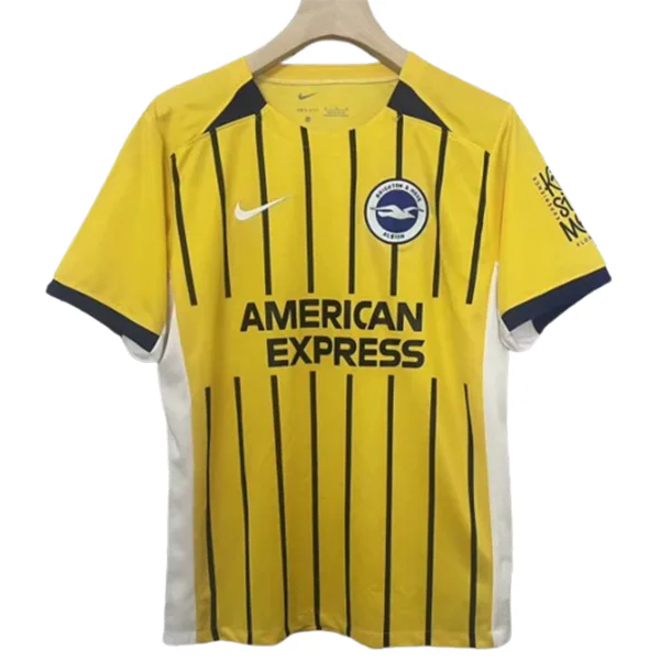 El Brighton & Hove Albion vive una era dorada en la Premier League, consolidándose como uno de los camisetas más atractivos del fútbol inglés. La camiseta Brighton & Hove Albion 2024 2025 en su versión visitante de color amarillo rinde homenaje a esa identidad audaz y luminosa que las Gaviotas exhiben fuera del Amex Stadium. Cada detalle del diseño evoca las gestas recientes del club, su fútbol vertical y su espíritu competitivo. No esperes más: hazte con la tuya y luce el orgullo del sur de Inglaterra. Descubre también Ver todas las Premier League.