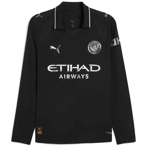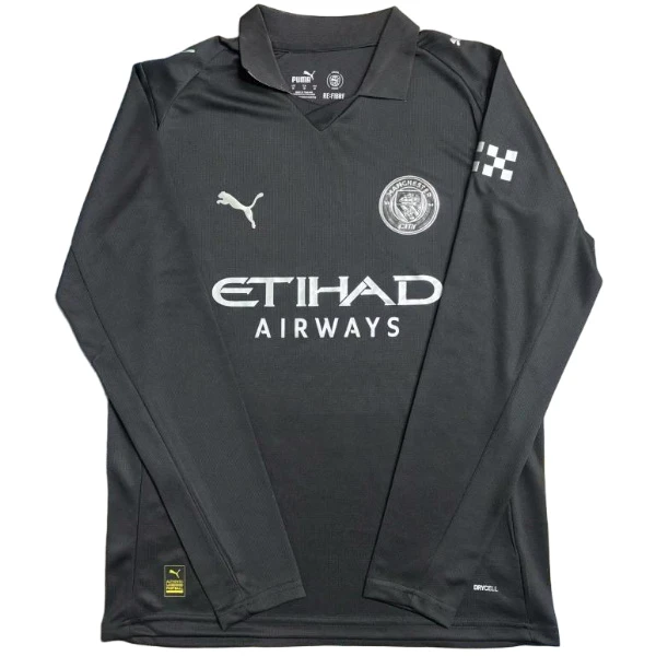 El Manchester City afronta la temporada 2025 2026 con la ambición de seguir reinando en la Premier League y conquistar Europa. Tras años dorados levantando trofeos, el conjunto de Etihad mantiene un estilo de juego reconocible y una plantilla estelar. Esta camiseta Manchester City 2025 2026 en versión segunda equipación negra rinde homenaje a esa era de gloria, con manga larga ideal para las noches frías de Champions. Llévala puesta y siente cada gol como propio. Si quieres explorar más opciones del fútbol inglés, puedes Ver todas las Premier League disponibles en la tienda.