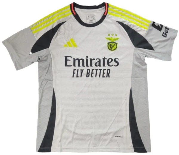 La SL Benfica camiseta tercera 2024 2025 en gris representa una temporada llena de orgullo para las Águilas. El club lisboeta sigue luchando por cada título con garra y pasión, y esta equipación alternativa refleja la elegancia y la fuerza que caracterizan al Benfica. La camiseta está diseñada con material técnico de alta calidad que garantiza transpirabilidad y libertad de movimiento. ¡Compra ya y vive la gloria encarnada!