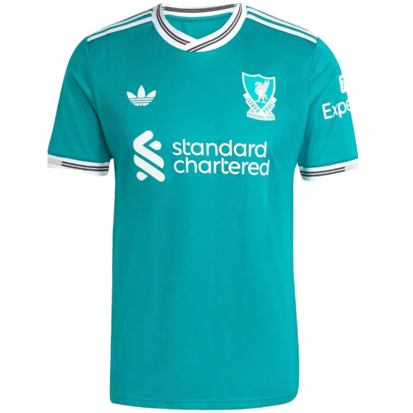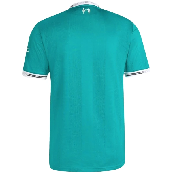 Diseñada para los días de partido, la Camiseta tercera del Liverpool ofrece un ajuste cómodo, tejido transpirable y tecnología de secado rápido que mantienen al fan fresco durante los 90 minutos. La Camiseta luce el escudo del club y los detalles cromáticos verdes que la convierten en pieza única. Si buscas variar de estilo, prueba la Tailandia Especial Camiseta Liverpool 2025 2026 Azul Negro y alterna looks cada jornada. ¡Vístete de Liverpool y haz vibrar Anfield desde tu salón!