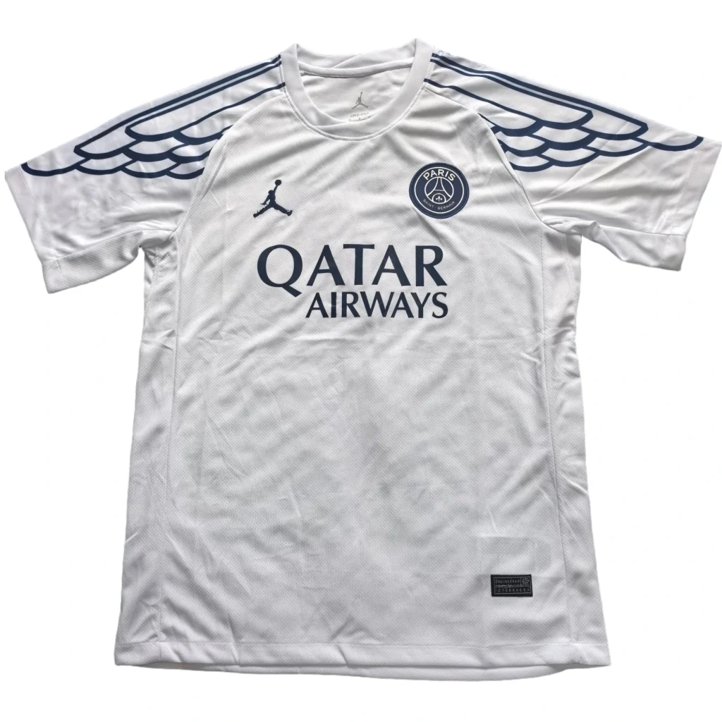 La camiseta Paris Saint Germain 2025 2026 especial en blanco es una prenda imprescindible para los verdaderos aficionados. Celebra la grandeza del PSG con este diseño exclusivo que captura la esencia del club. Confeccionada con tecnología de secado rápido, esta camiseta te mantiene cómodo y fresco, ya sea en el estadio o animando desde casa. Muestra tu lealtad y vístete con los colores de tu equipo favorito. ¡Compra la camiseta tuya hoy y siente la pasión del fútbol!